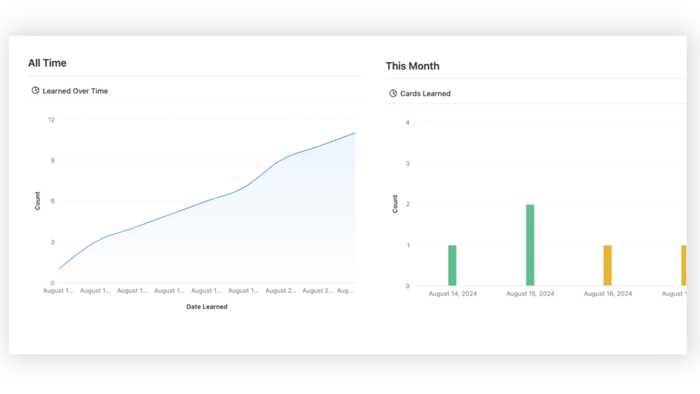 • My Stats: Every card learned can be tracked with built-in charts and graphs!