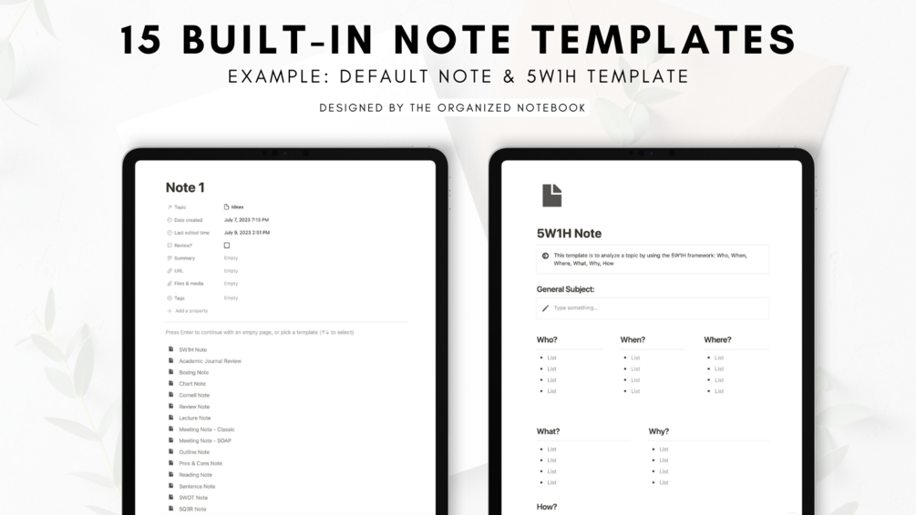 - 15 Types of Note-taking templates: There are 15 types of note templates you can choose from. All of them are based off of different note-taking methods.