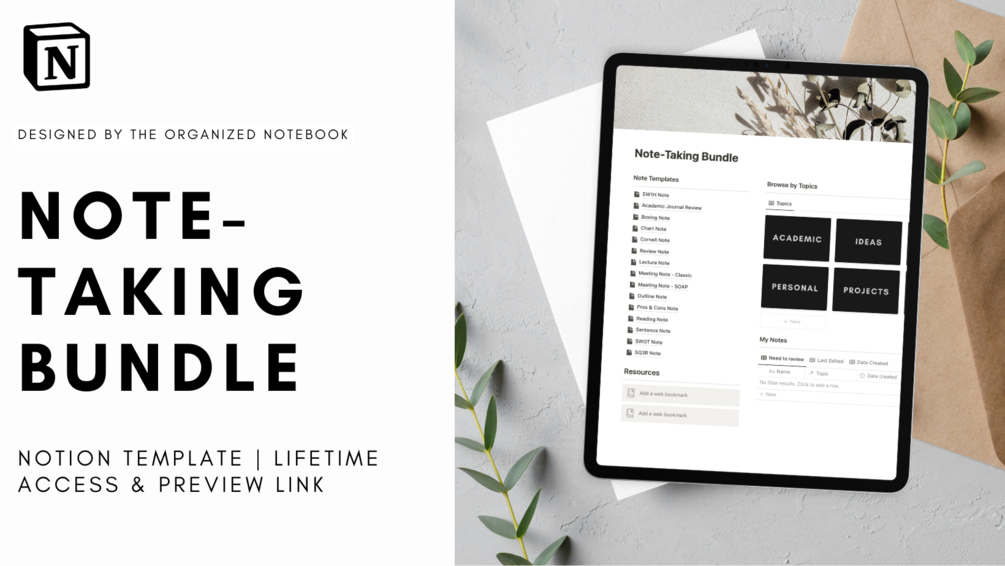 This bundle features a place to store your notes and notebooks, as well as fifteen different types of note-taking templates. We believe you should use different methods for note-taking depending on your needs. In this bundle, we’ve included a cornell note template, outline note template, chart note template, an SQ3R note template, and more!