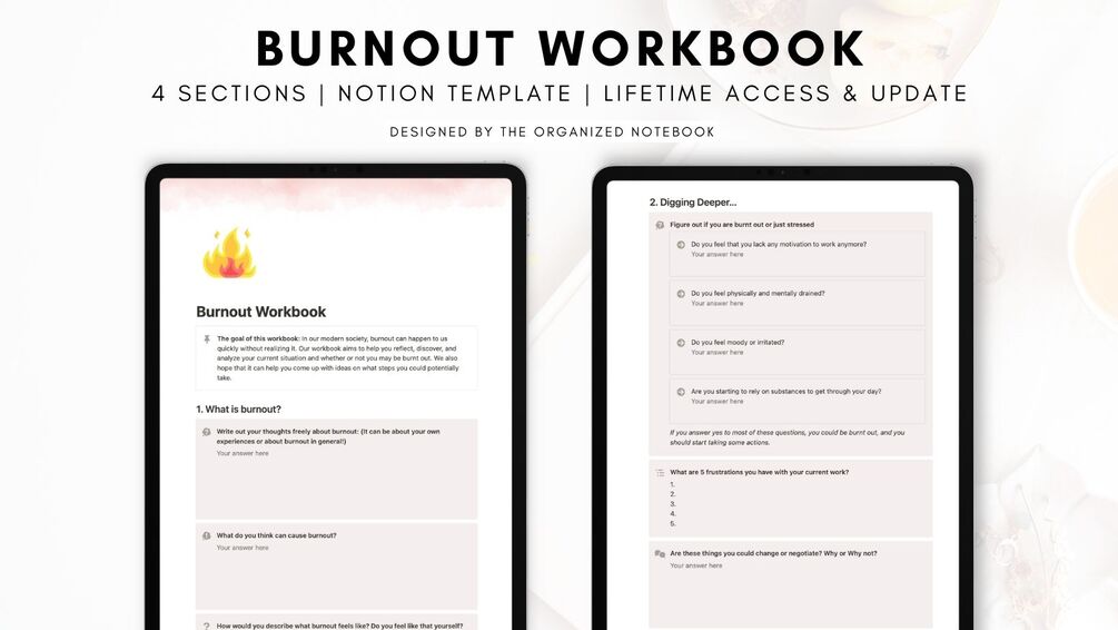 The standard version includes the "Burnout Workbook". This way you can get a feel for our Notion workbooks without committing to the full premium version!